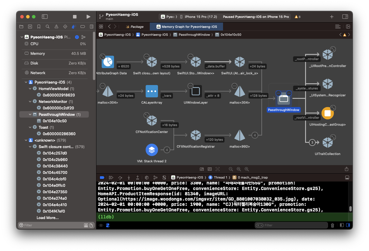 - ViewController는 클래스라서 Memory Debugging을 해보면 해당 객체가 나타나지만, SwiftUI는 그렇지 않음