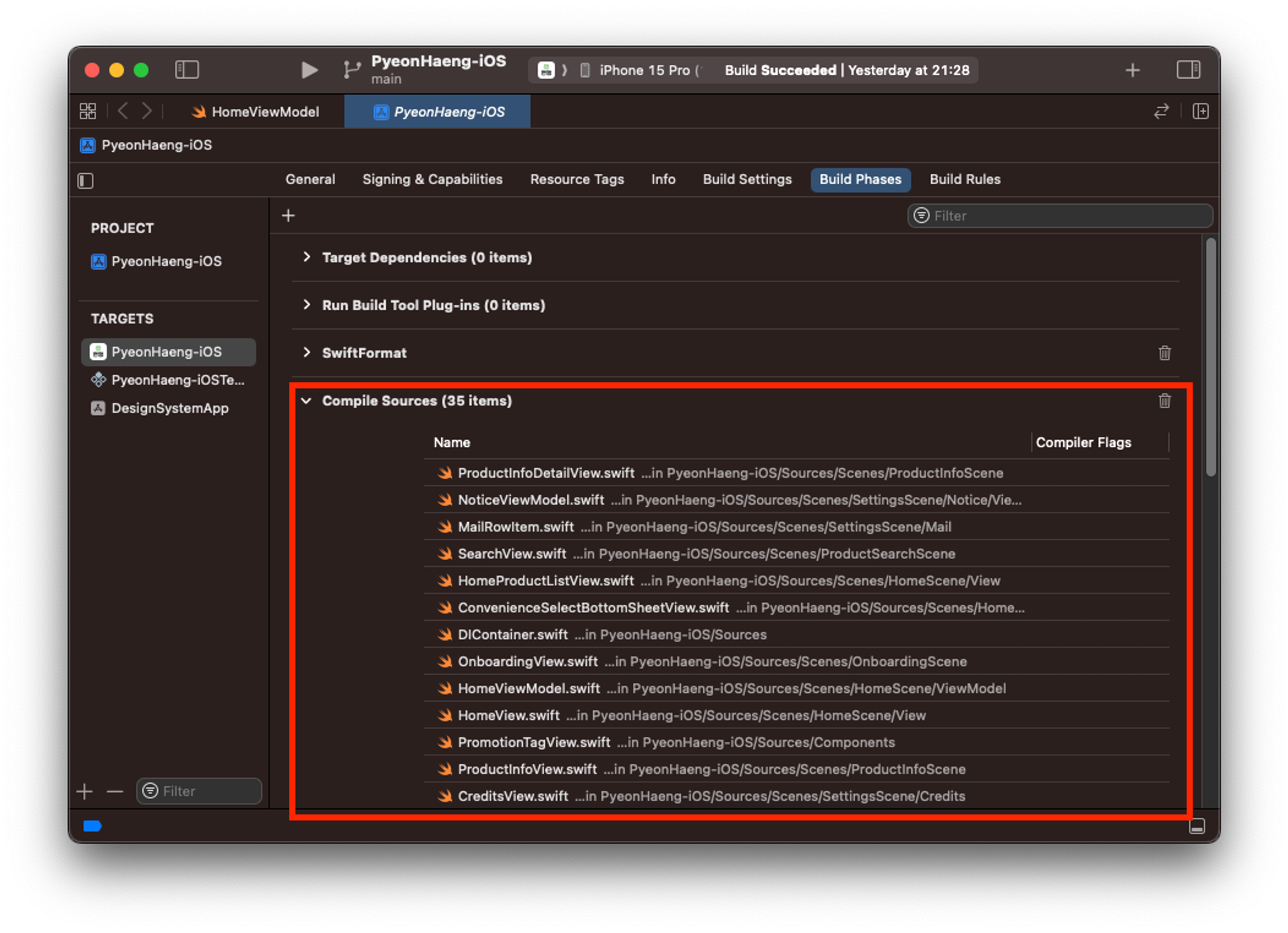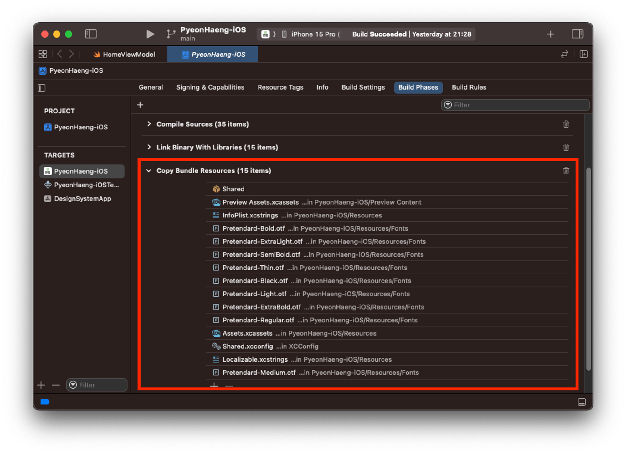 - Build가 되면, Target Dependencies부터 Copy Bundle Resources까지 순서대로 Build를 진행